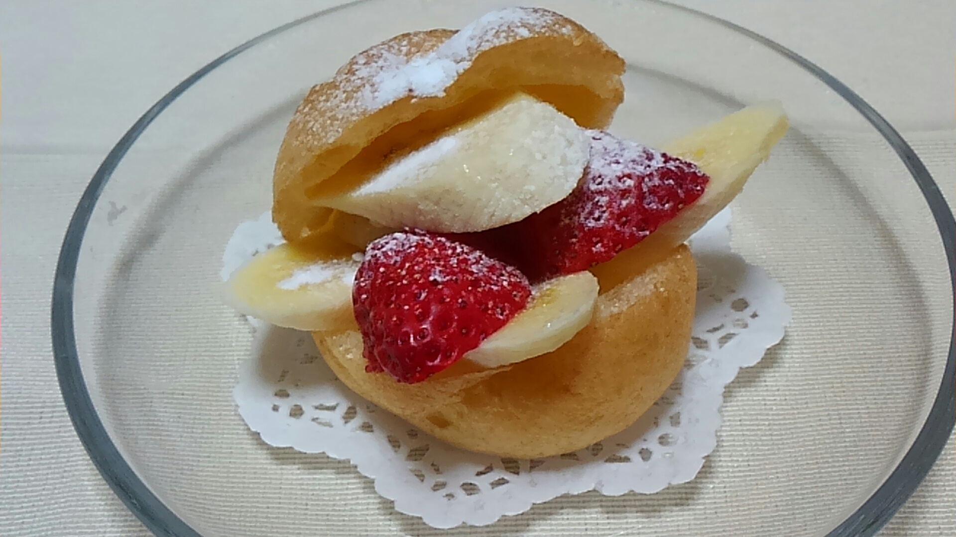 バナナと苺とパウダーシュガーのシュークリーム レシピ 作り方 By ミニー7015 楽天レシピ
